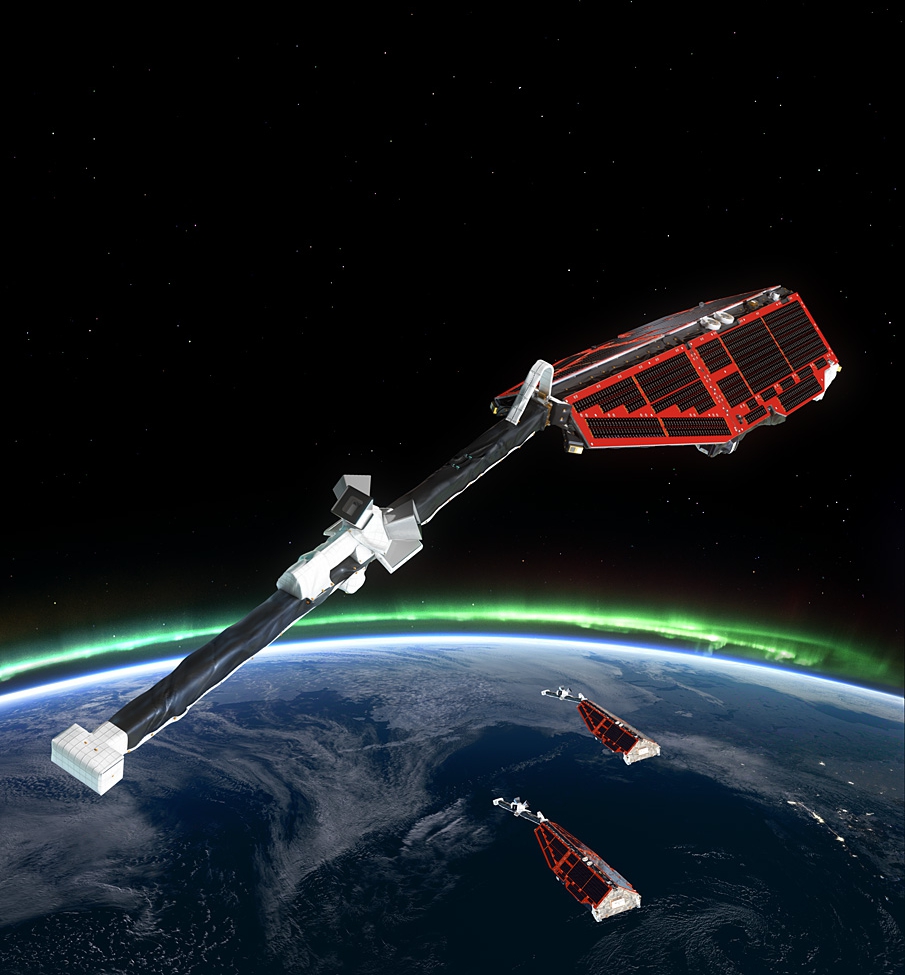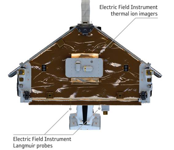 The satellites also measures the electric field in the ionosphere using novel Langmuir probes and an electric field instrument sited on the front of the satellite, giving a full physical measurement of the field in the upper atmosphere for the first time.