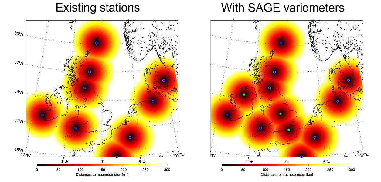 With the new sites we will be better able to monitor the location and change of the auroral oval as it moves back and forward across the UK during geomagnetic storms. With the data flowing to us in near real time we can also use it to nowcast where issues from Geomagnetically Induced Currents created by geoelectric fields occur.